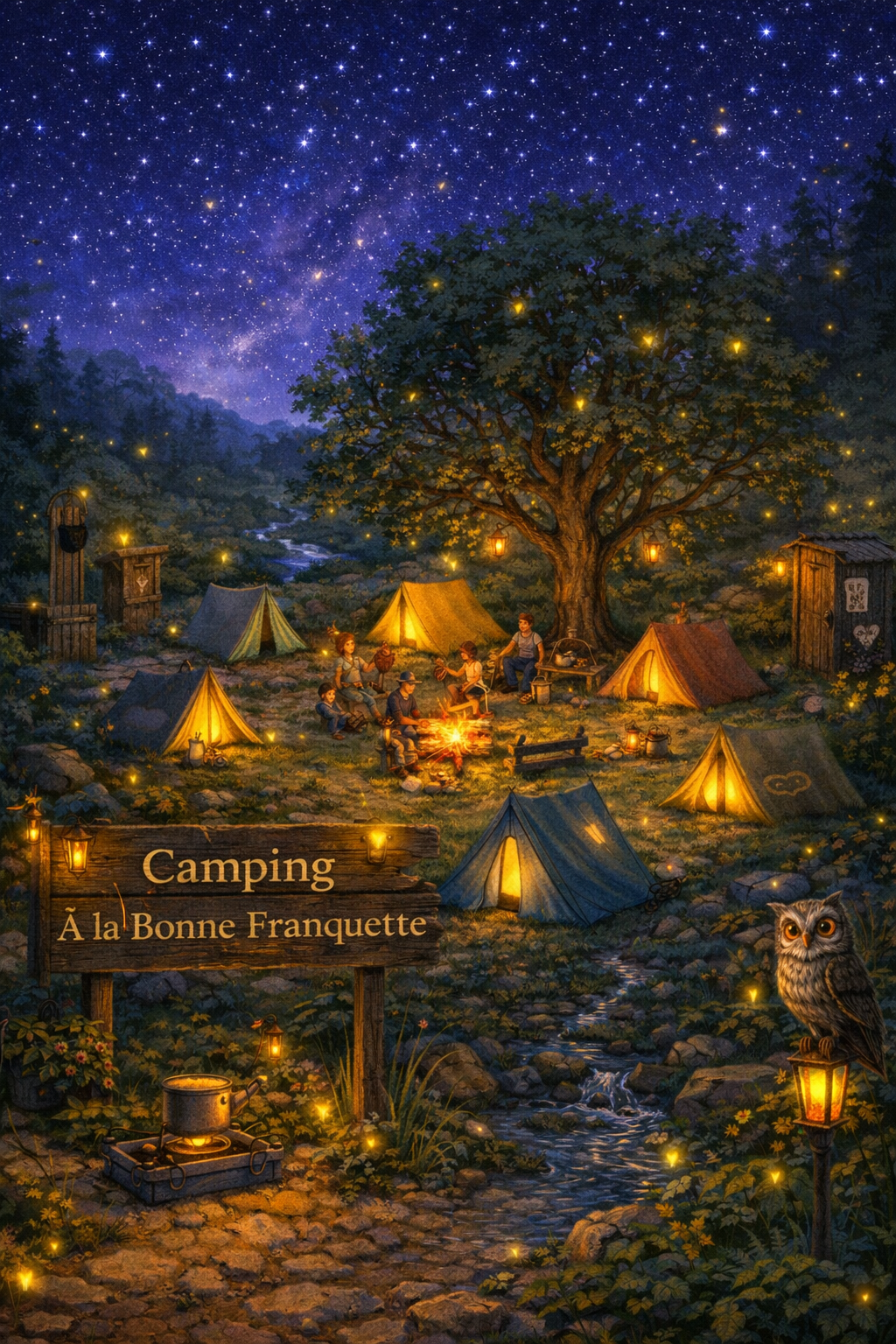À la périphérie du village des lucioles s'est installé le camping À la Bonne Franquette sur quelques ares de bon sens encore fertiles.